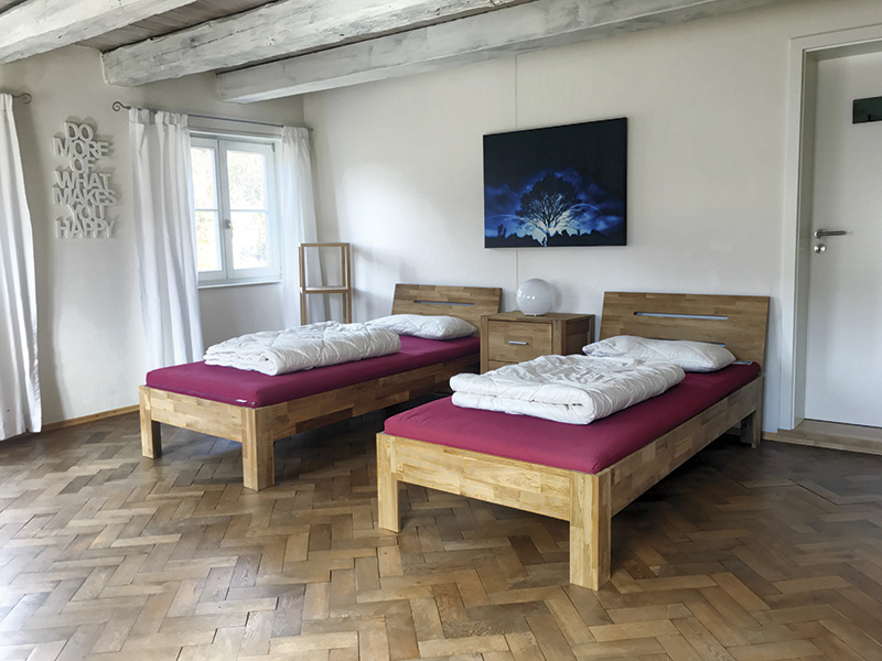 Du übernachtest frei nach Wahl – und isst bei uns mit, wenn du möchtest: biologische, vegetarische Vollverpflegung (Frühstücksbuffet + 2 warme Mahlzeiten, Obst & Getränke tagsüber).