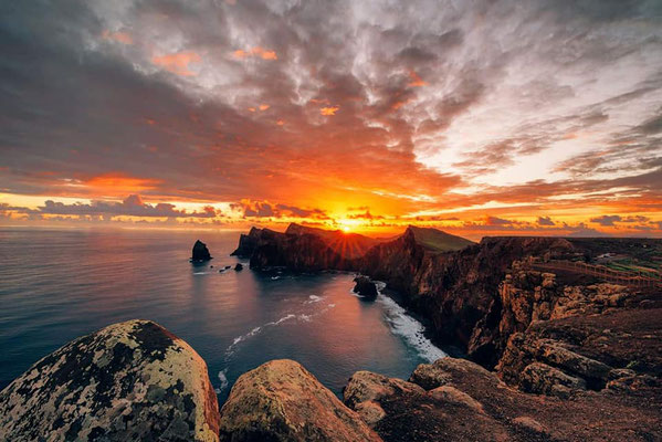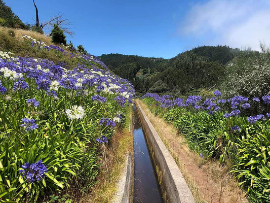 Auf der Straße sieht man kleine Kuhherden, die freilaufend die Hochebene bevölkern. Das Plateau von Paul da Serra liegt auf 1.300 m Höhe und formt im westlichen Teil von Madeira die Trennlinie zwischen Norden und Süden. Diese Levadawanderung führt durch faszinierende Landschaften mit kolossalen Tälern, Wasserfällen, durch endlosen Lorbeer- und Bergwald mit schönen Quellen.